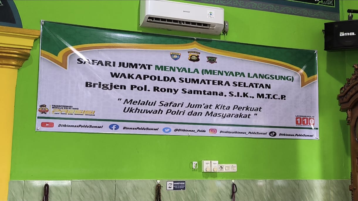 Kegiatan tersebut dihadiri Wakapolda Sumsel Brigjen Pol Rony Samtana didampingi para pejabat utama Polda Sumsel. Usai salat Jumat, Wakapolda mengajak masyarakat berdialog melalui program Menyala (Menyapa langsung).