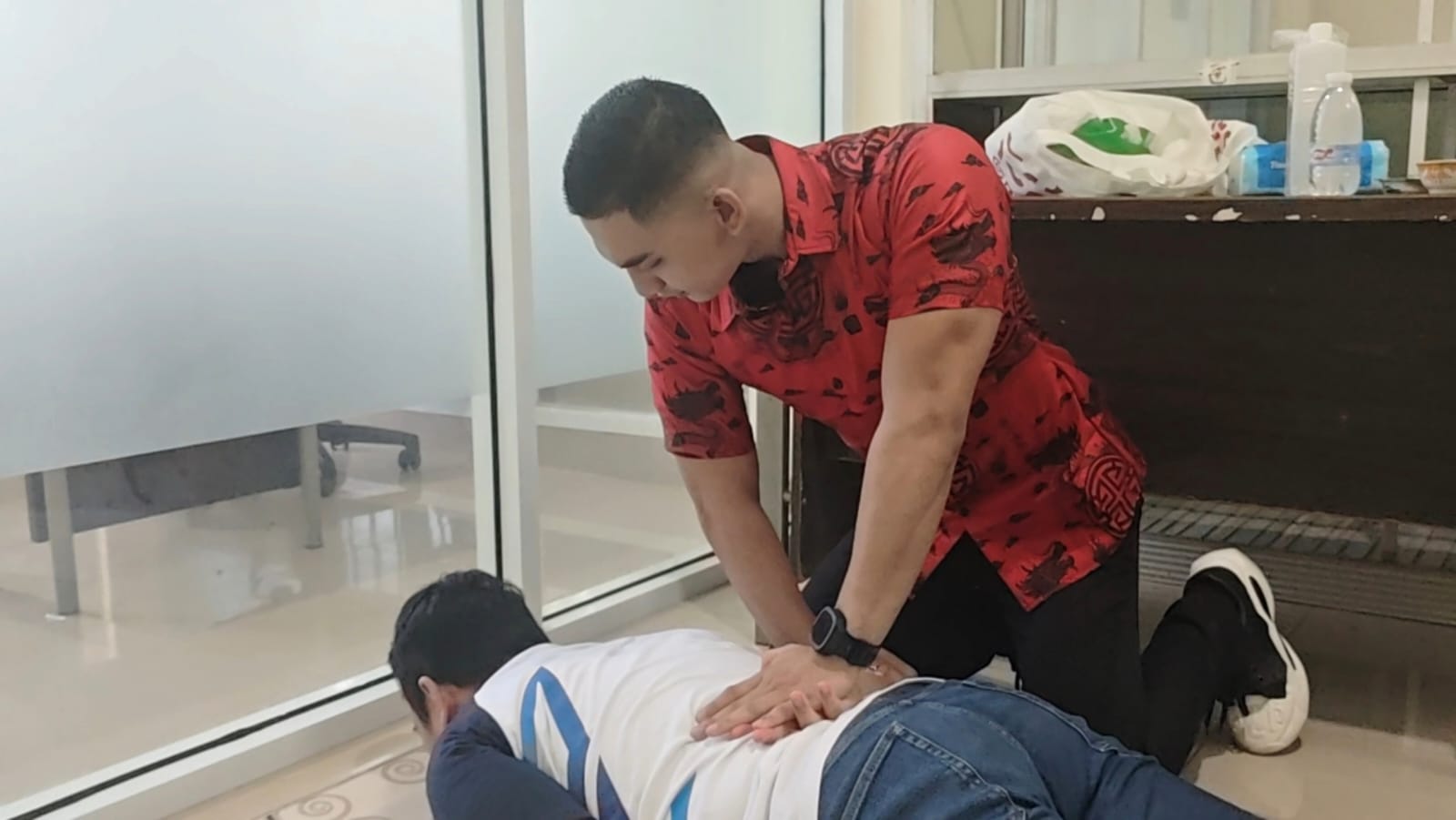 Sinshe Ming melakukan terapi, nyeri di bahu dan lengan kanan membuat berkurang dan terasa lebih ringan.--Foto : M. Aidil - PALTV