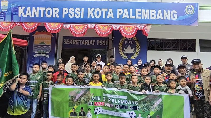 Pelepasan belasan atlet mini soccer MIN 2 Palembang yang akan berlaga di Liga Merah Putih Tingkat Nasional di Bandung, Kamis (4/12/2025).-Aidil-PALTV