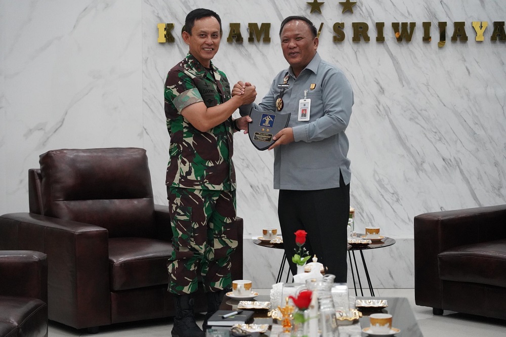 PALEMBANG, PALTV.CO.ID– Kepala Kantor Wilayah Kementerian Hukum Sumatera Selatan, Maju Amintas Siburian, melakukan audiensi dengan Panglima Kodam II/Sriwijaya, Mayjen TNI Ujang Darwis, di Markas Kodam II/Sriwijaya, Palembang, Selasa (12/8).