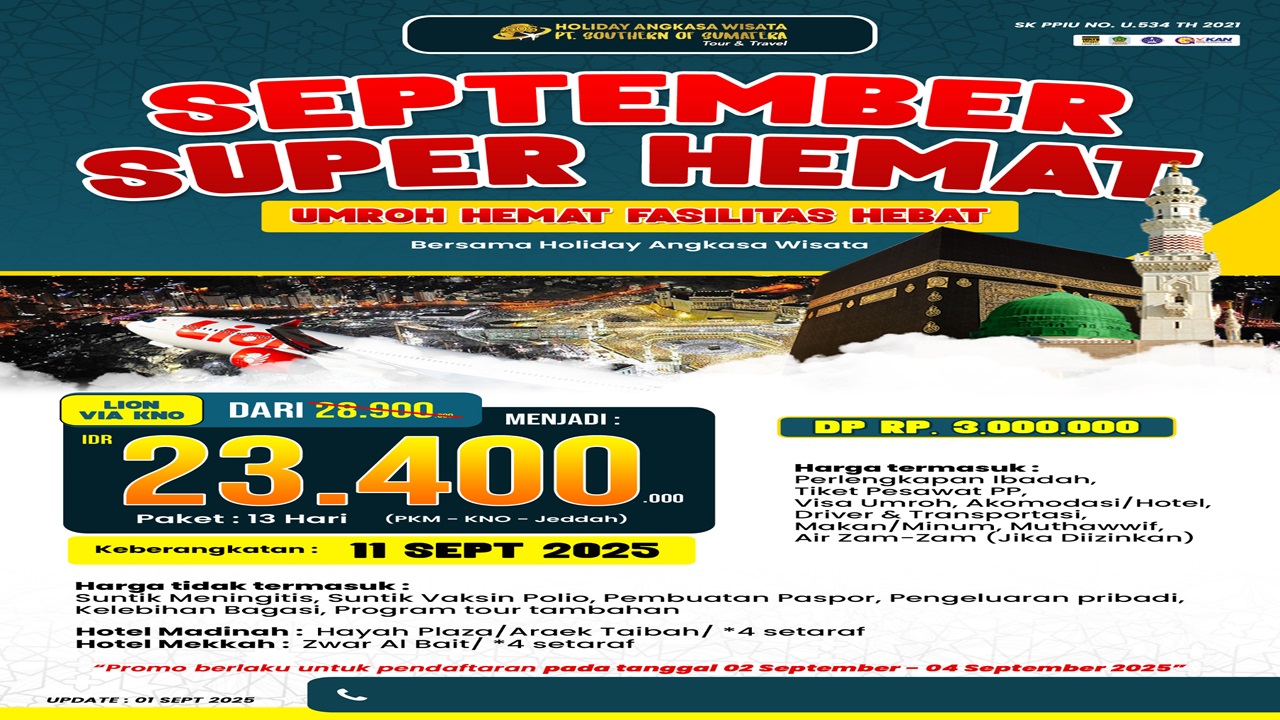 Reputasi ini semakin diperkuat dengan berbagai inovasi promo, salah satunya adalah Umrah September Super Hemat yang tengah menarik perhatian masyarakat.
