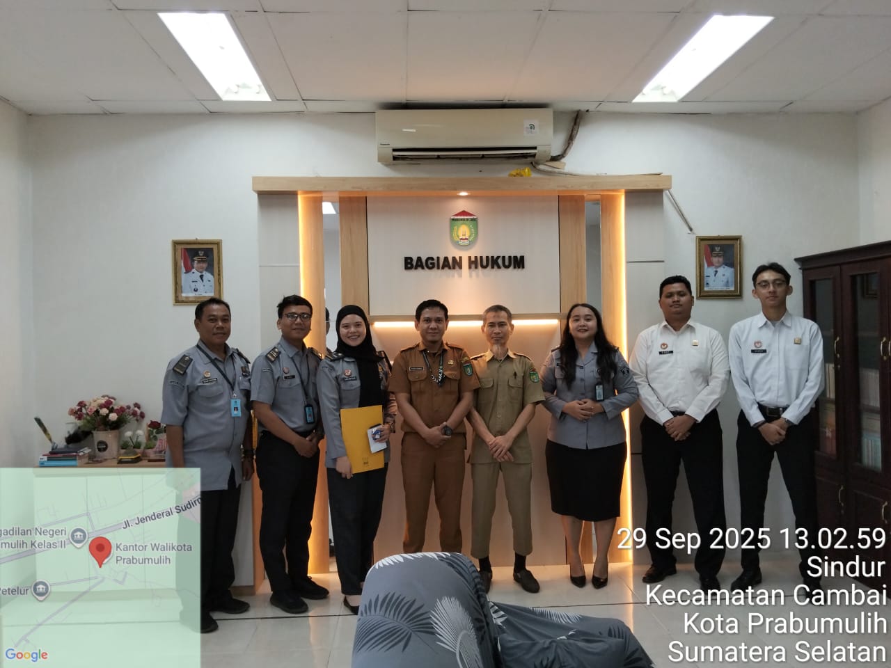 Kegiatan yang berlangsung di Ruang Bagian Hukum Pemkot Prabumulih ini dihadiri oleh Fadlur Rachman, ST. (Kepala Sub Bagian JDIH Pemkot Prabumulih), Ferri Stiawan (Penelaah Teknis Kebijakan), Phuput Mayasari (Analis Kebijakan Ahli Muda), serta Tim Kerja BSK Kanwil Kemenkum Sumsel.