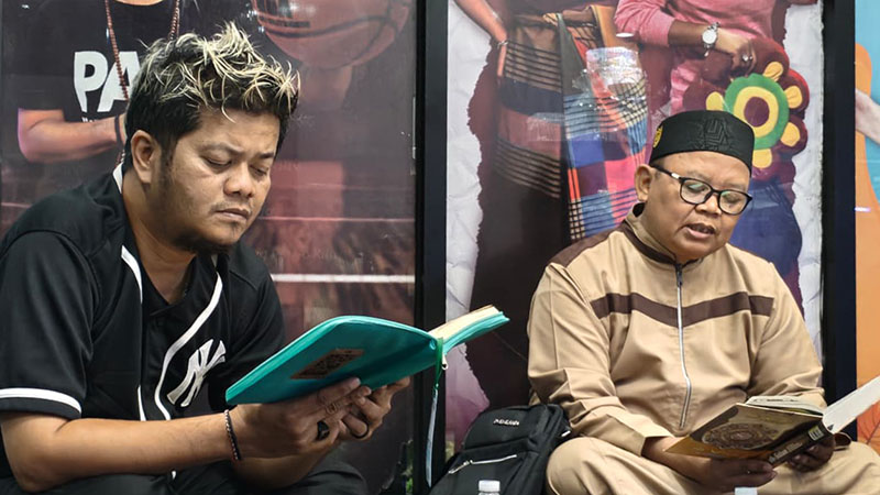 GM PALTV Sri Pebriandi dan Ustadz Muri sedang membaca Al-Qur’an, Selasa (7/10/2025).-Aidil-PALTV