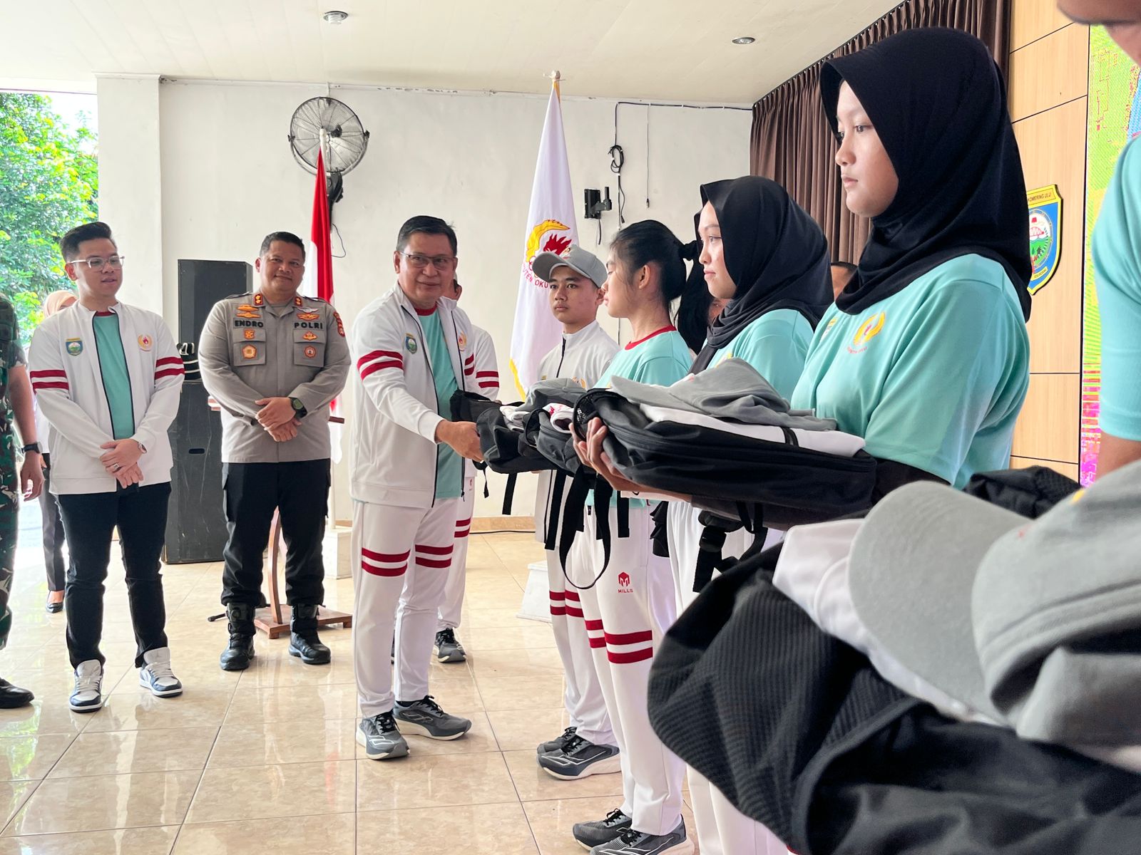 Pelepasan Kontigen Oku dilakukan bersama Kapolres OKU AKBP Endro Aribowo, Dandim 0403 OKU Letkol Arh Yusuf Winarno, Ketua Koni Kabupaten OKU serta tamu undangan lainnya di pendopo rumah dinas Bupati OKU, Rabu (15/10/2025). -Yunini-PALTV
