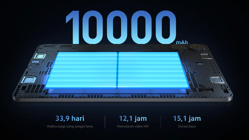 Salah satu keunggulan utama dari Redmi Pad Pro adalah baterai berkapasitas 10.000 mAh, yang mampu bertahan seharian penuh bahkan untuk penggunaan intensif.