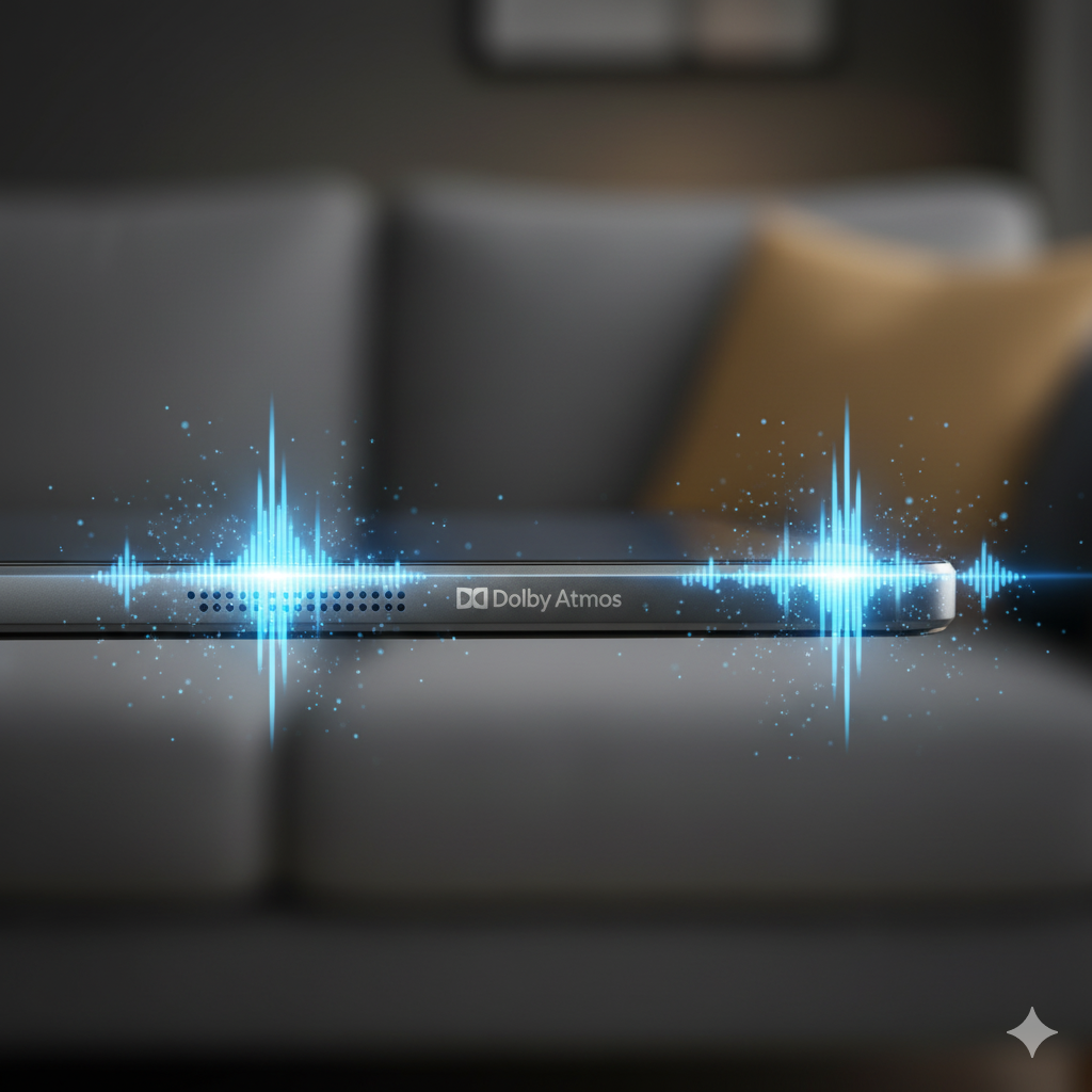 Meski Dolby Atmos memberikan kualitas audio yang kuat, speaker tablet tetap memiliki batasan dibanding sistem home theater besar.