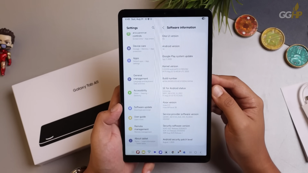 Tablet ini memiliki layar berukuran 8,7 inci dengan resolusi 1340×800 piksel dan refresh rate 90 Hz. refresh rate 90 Hz memberi pengalaman tampilan yang lebih halus berguna saat berpindah antar aplikasi, membuka chat meeting, atau berbagi layar selama panggilan video. Tambahan lainnya: layar diklaim tetap terang dan cukup terlihat di ruangan dengan cahaya terang.