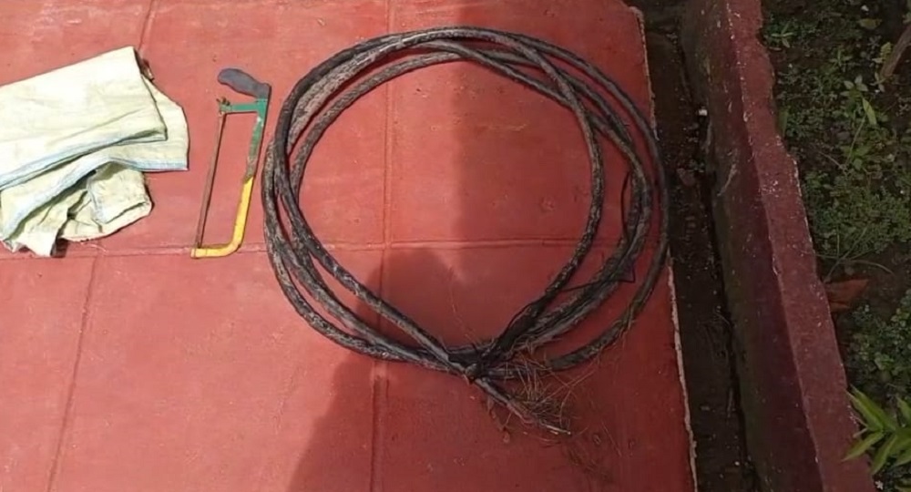 Mereka memotong kabel menggunakan gergaji besi dan berhasil mengambil potongan kabel sepanjang 10 meter sebelum tertangkap.