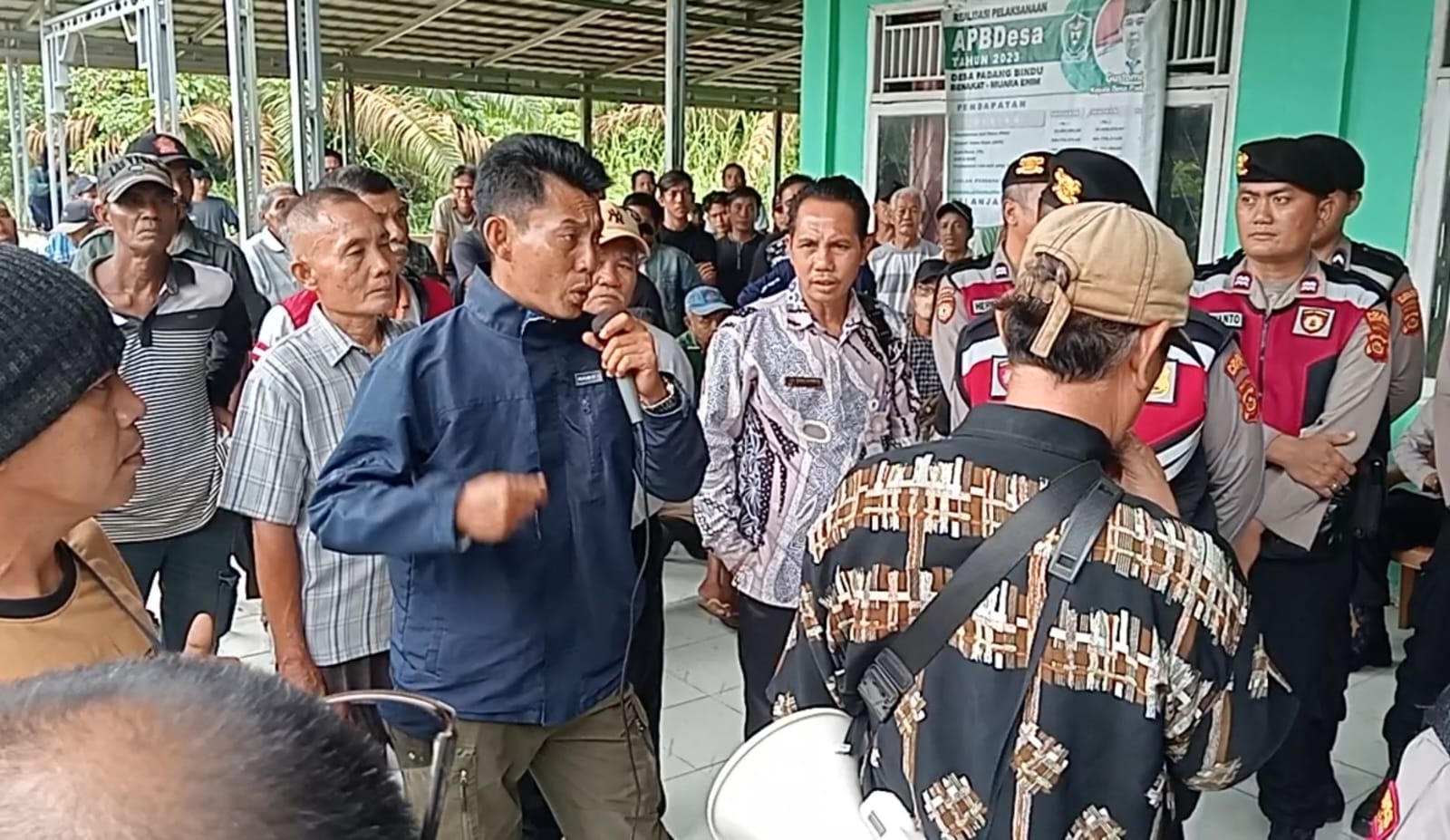 Pihak perangkat desa menyampaikan hasil mediasi terkait tuntutan warga. --Foto : Mardiansyah - PALTV