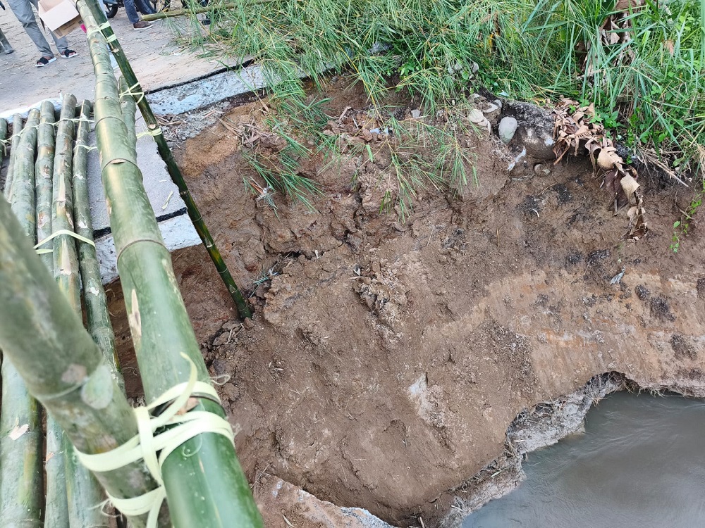 Kejadian ini diduga kuat dipicu oleh meningkatnya debit air sungai yang menggerus pondasi hingga menyebabkan longsor dan berujung pada robohnya badan jembatan.