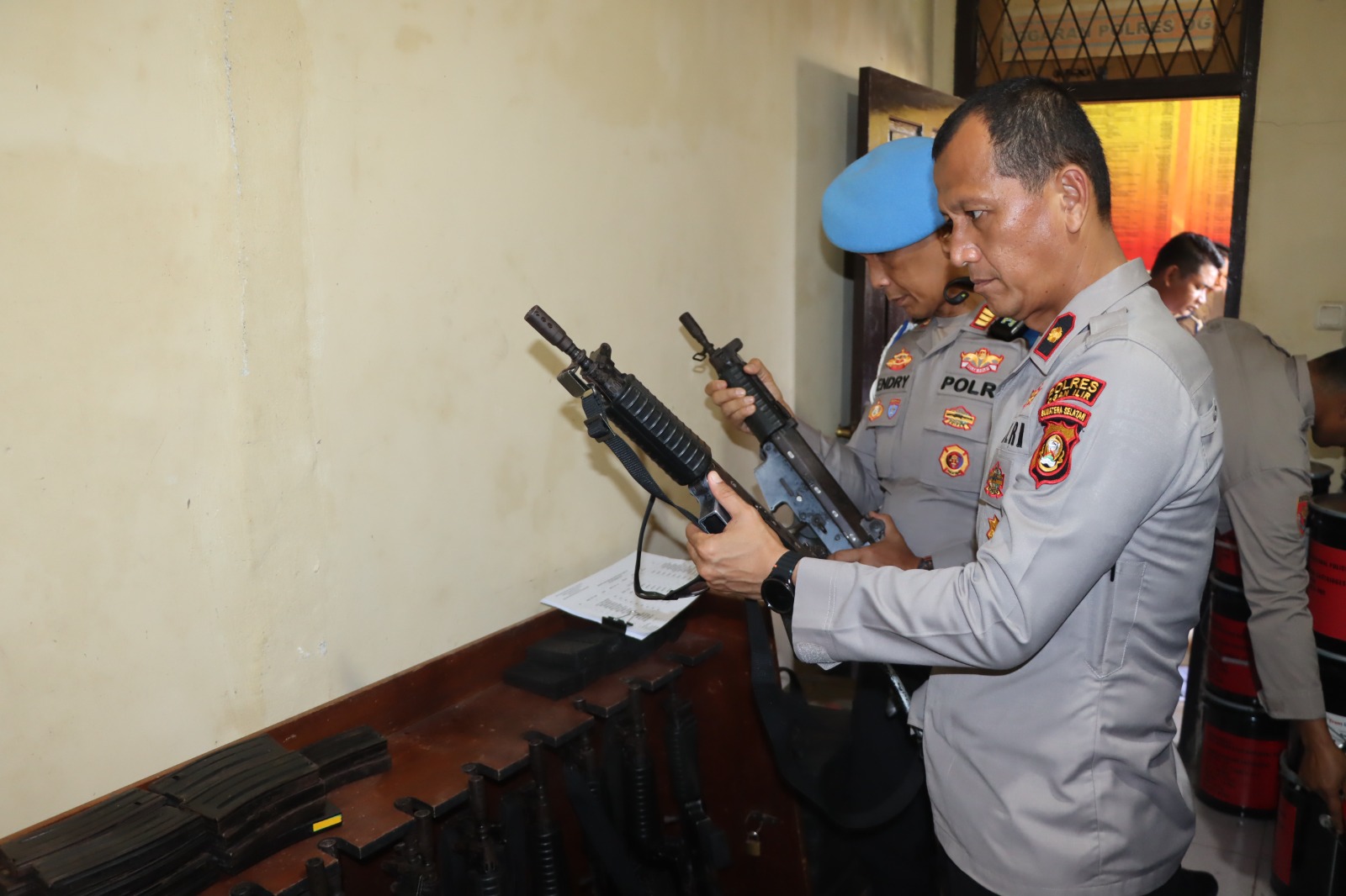 Proses pemeriksaan senpi laras panjang dan pendek oleh jajaran kepolisian--Foto : Polres Ogan Ilir