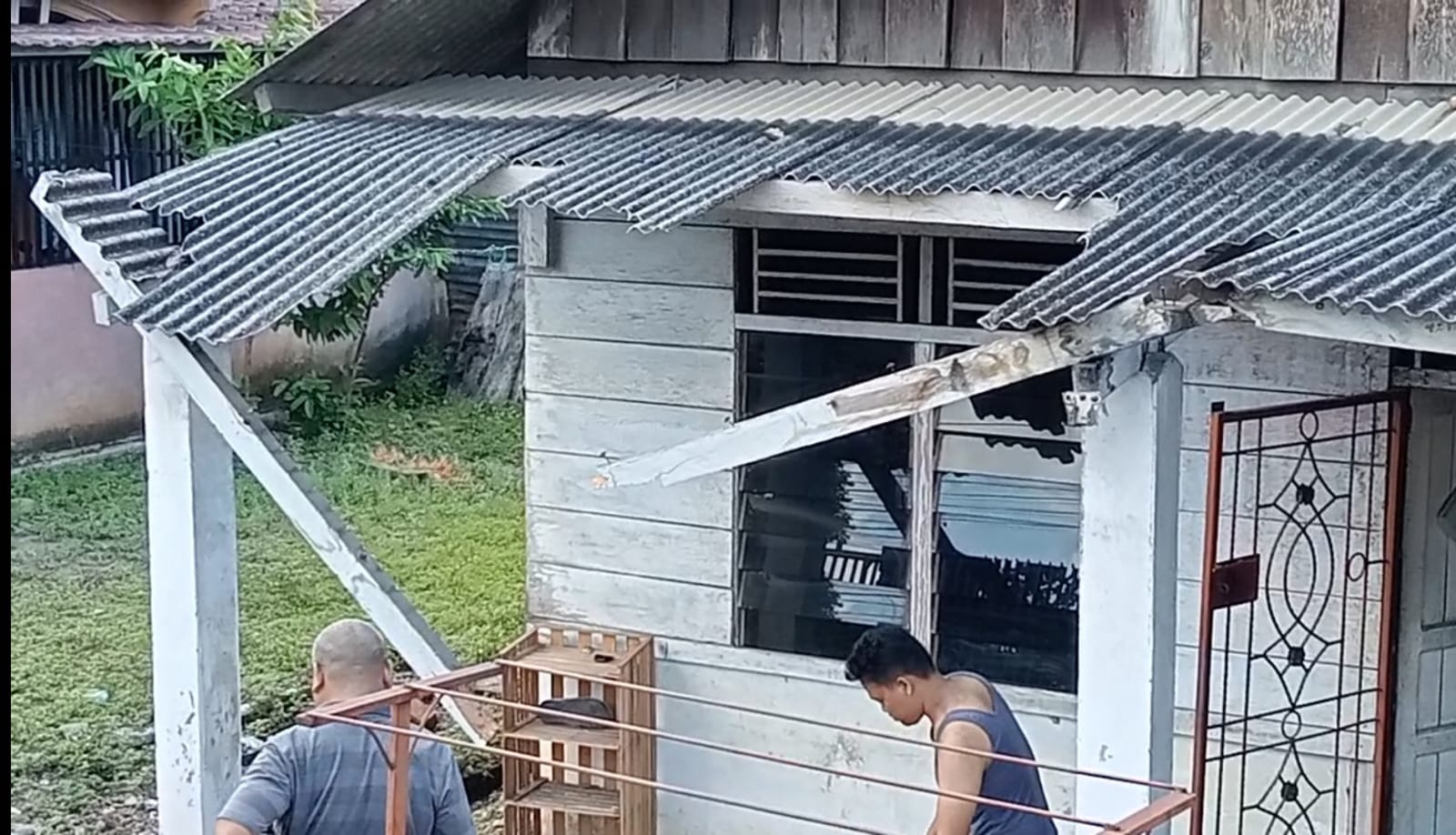 Atap teras rumah warga roboh akibat korban laka yang terpental.--Foto : Mardiansyah - PALTV
