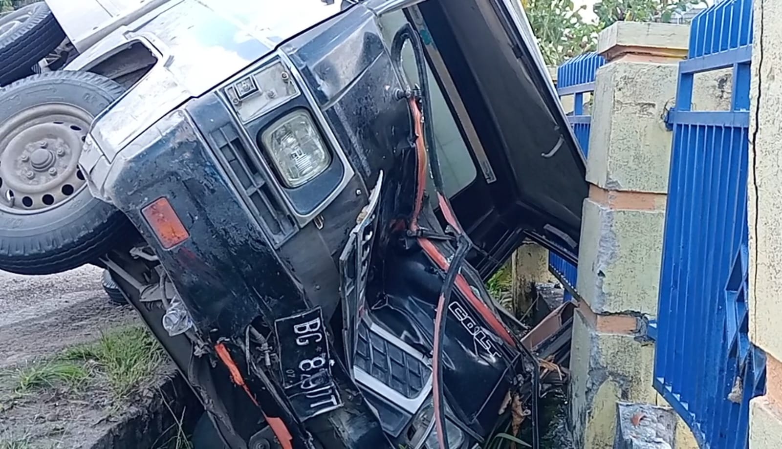"Entah tiba-tiba setir saya berat untuk di kendalikan, saya sudah mengerem namun oleng" katanya.