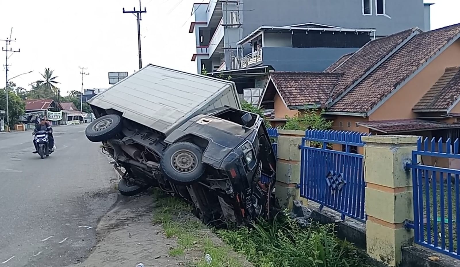 Kondisi mobil boks yang menabrak sepeda motor usai kejadian. --Foto : Mardiansyah - PALTV