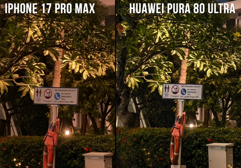 Saat malam hari, perbedaan filosofi semakin terasa. iPhone 17 Pro mengandalkan Night Mode berbasis AI yang bekerja otomatis. Hasilnya terang, minim noise, dan tetap enak dilihat meski diambil tanpa tripod.