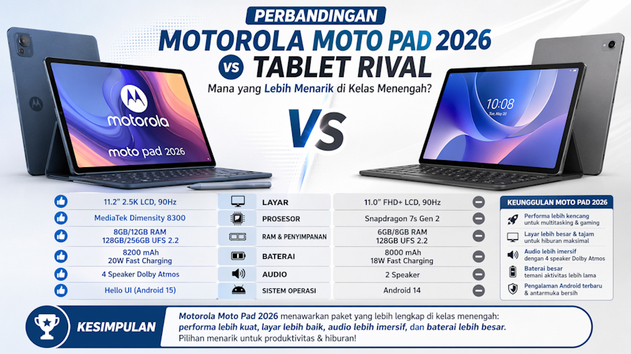 Perbandingan antara Motorola Moto Pad 2026 vs tablet rival, mana yang lebih menarik di kelas menengah?--ChatGPT Image